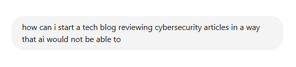 When I told my mom about the current NIST CSF project I’m working on, she even mentioned to me, “Make sure you produce something AI couldn’t.” I was actually stumped. It is no question that AI can far outwork me when it comes to summarizing large amounts of data in a fraction of the time. While I started this project not to get it done in a short amount of time (rather to actually learn the material), I started to worry: How would anyone online be able to tell that I actually wrote this material? Aside from my own personal satisfaction and the expertise I would gain from doing it myself, what is stopping me from just using AI to write the whole thing?