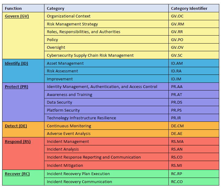 We begin our journey with first understanding the NIST CSF Core Functions and Categories. The NIST’s Core Functions include: